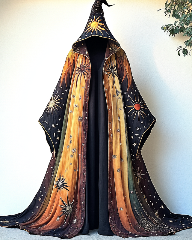 Star and moon embroidery gradient patchwork cape 51a3 51a3