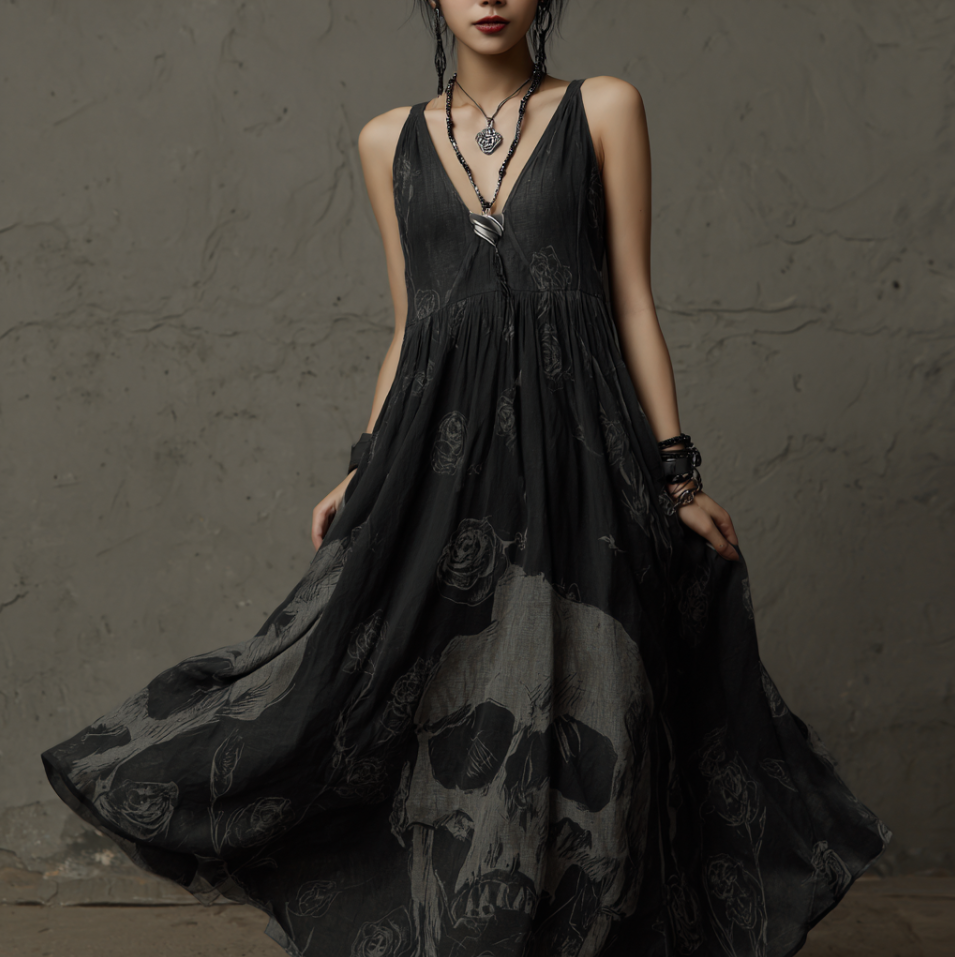 Halloween Skeleton Element V-neck Short Sleeve Dress
