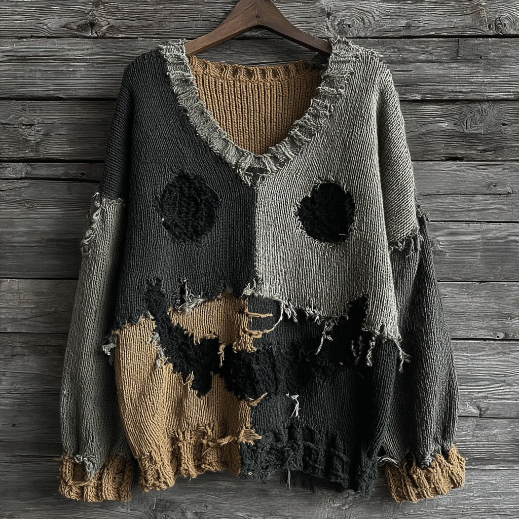 Halloween Spooky Face Contrast Stitching Comfortable V-neck Knitted Sweater