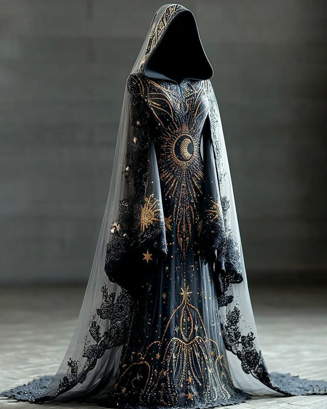Halloween Themed Star And Moon Embroidered lace Hooded dress 41af