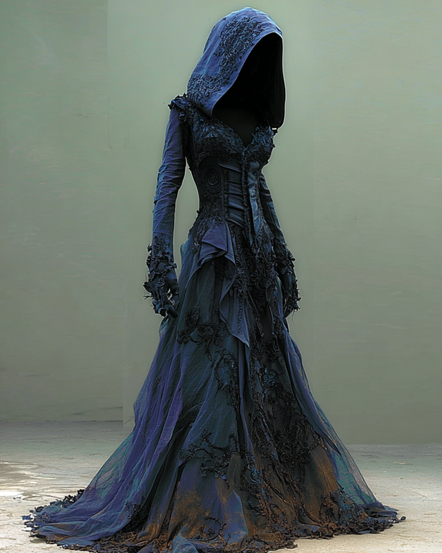Halloween Themed Irregular Lace Embroidered Hooded Dress ad1b