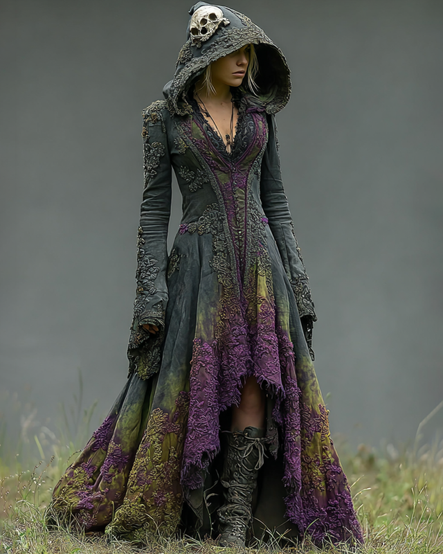 Halloween Themed Irregular Gradient Lace Patchwork Hooded Dress d60c