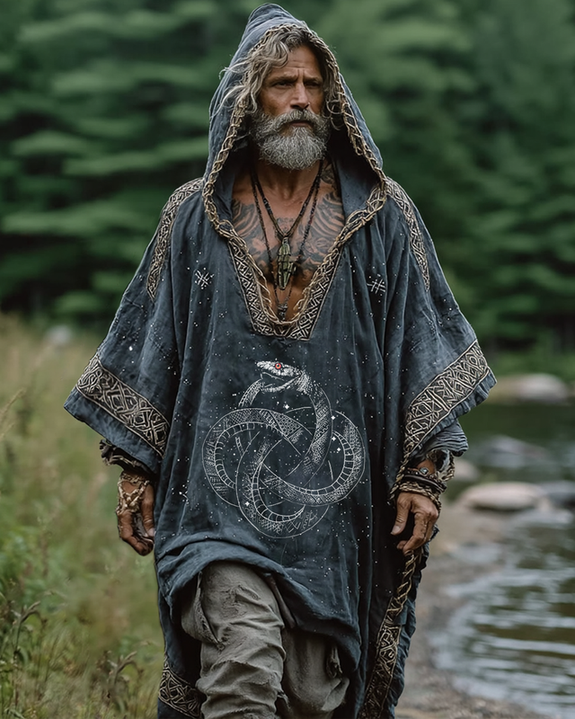 Men's Viking Ouroboros Celtic Woven 3D Embroidered Hooded Kaftan 3849