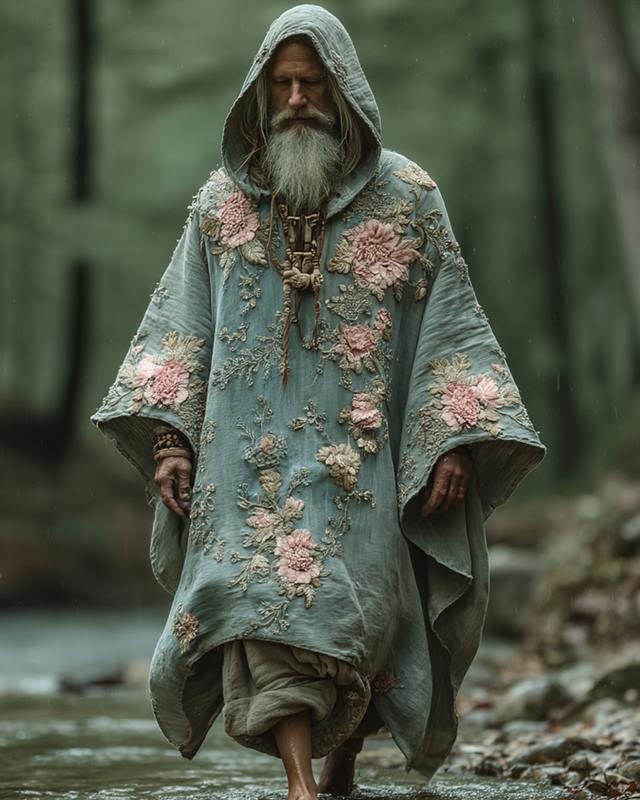 Men's Floral 3D Embroidered Hooded Kaftan 3b5f