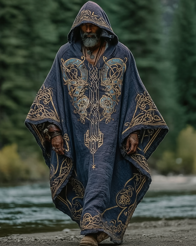 Men's Viking Double Dragon Celtic Woven 3D Embroidered Hooded Kaftan 7f23