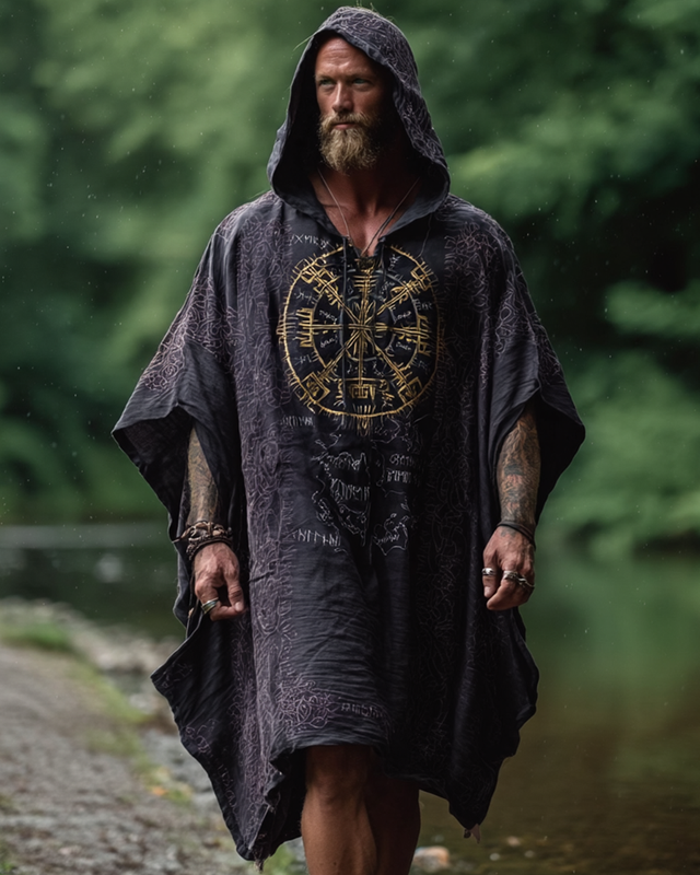 Men's Viking Compass Celtic Woven 3D Embroidered Hooded Kaftan d5ca