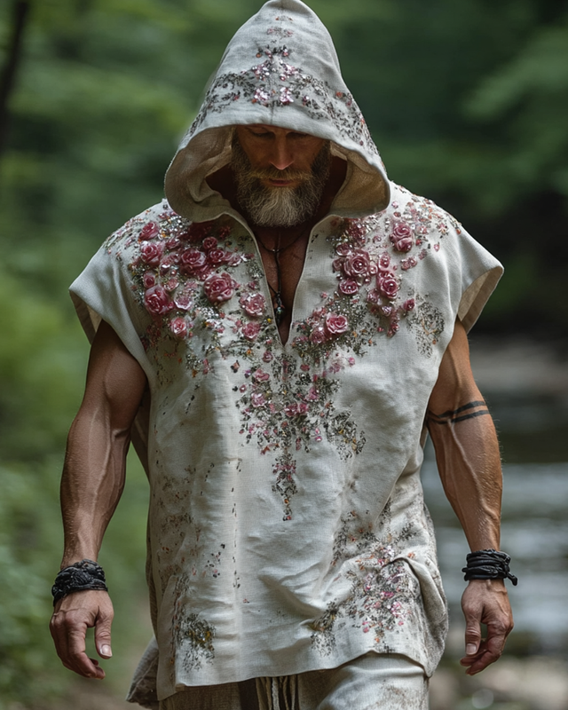 Men's 3D Floral Embroidered Hooded Sweatshirt a2da