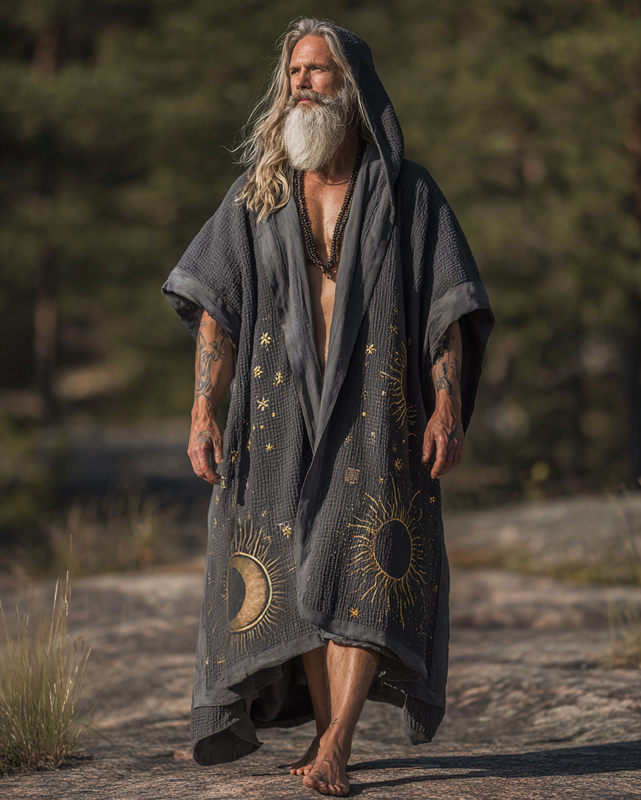 Men's Casual and Comfortable Star and Moon Three-Dimensional Embroidered Linen Kaftan 9af5