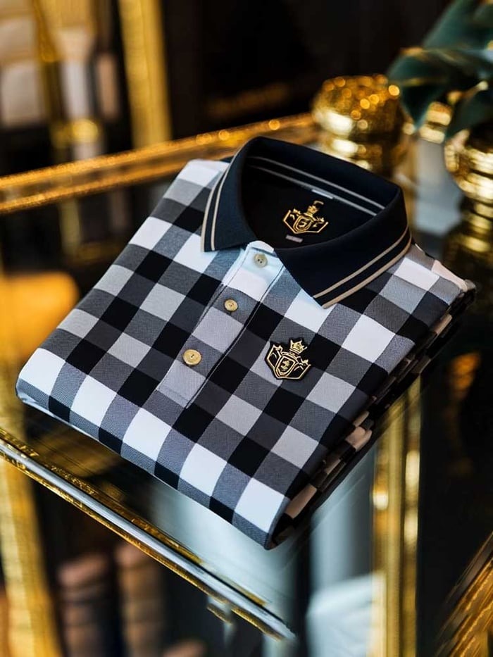 Men's Classic Business Logo Button Short Sleeve Polo Shirt