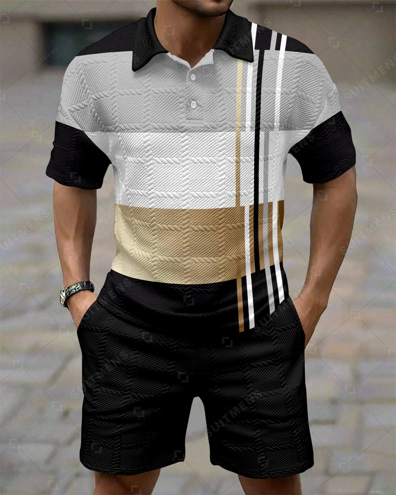 Men's Colorblock Simple Texture Summer Polo Shirt Set 259