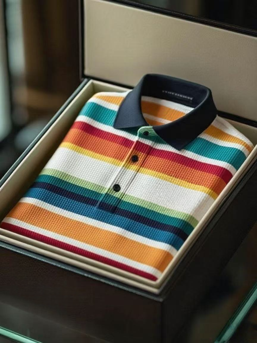 Men's Fashion Business Style Waffle Casual Short Sleeve POLO Shirt
