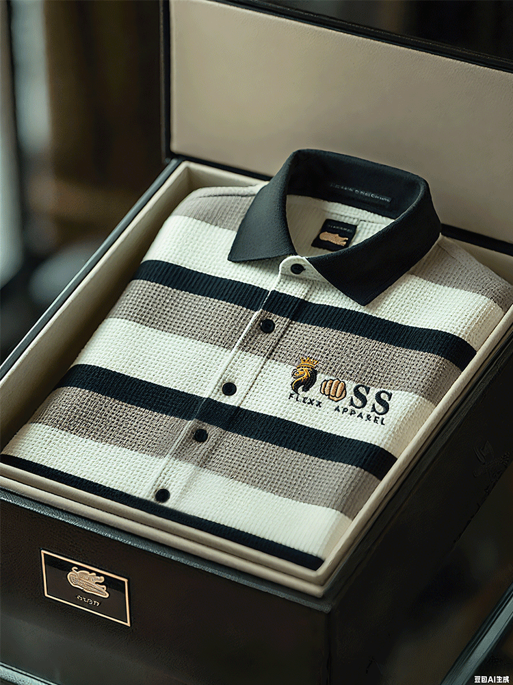 Men's fashionable business style letter print waffle casual short-sleeved shirt