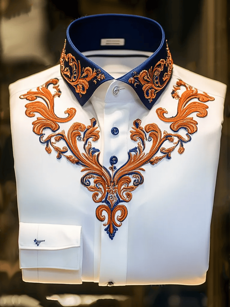 Men's Luxury Retro Contrast Pattern Long Sleeve Shirt
