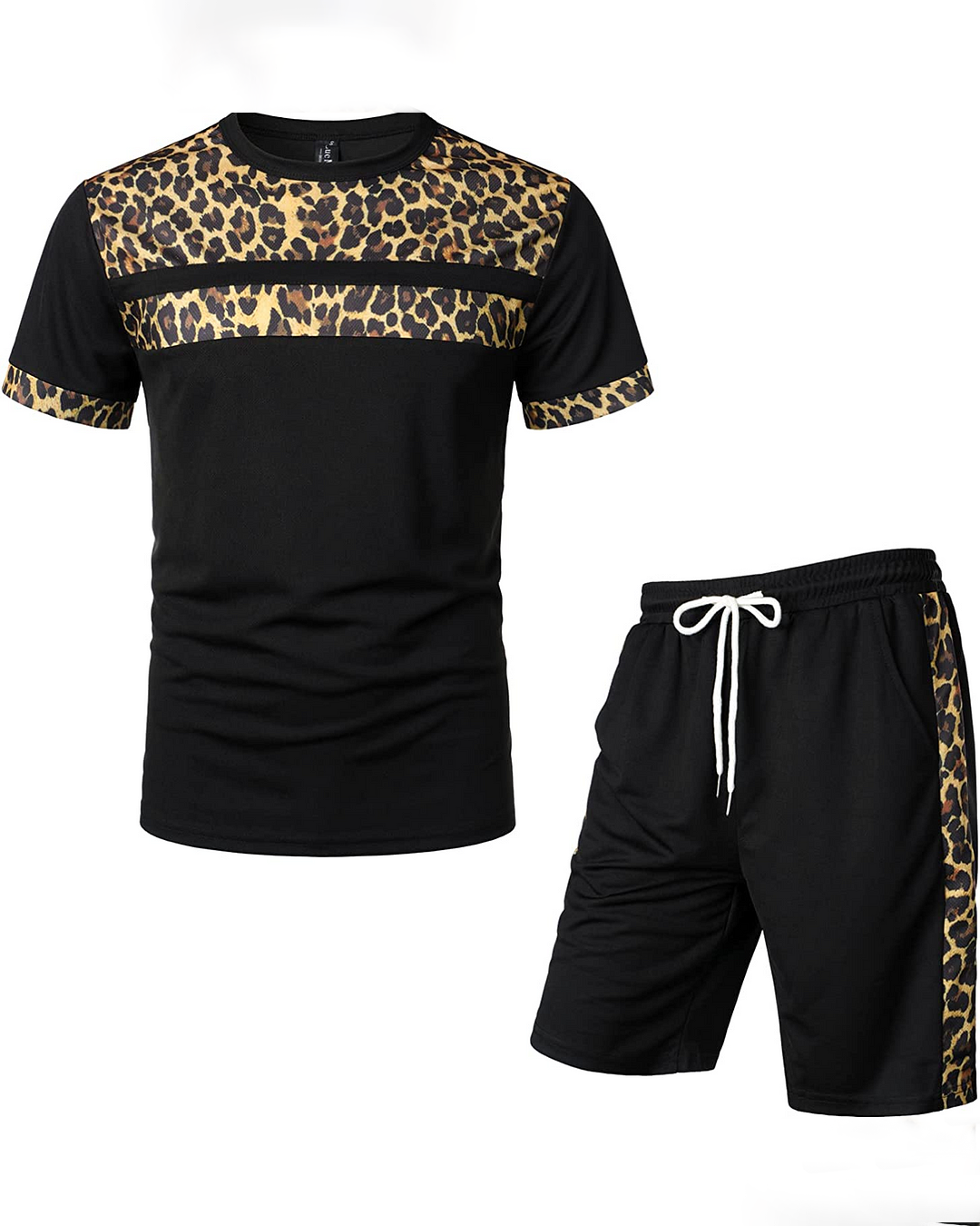 Men's Printed Colorblock T-Shirt and Shorts Set 018