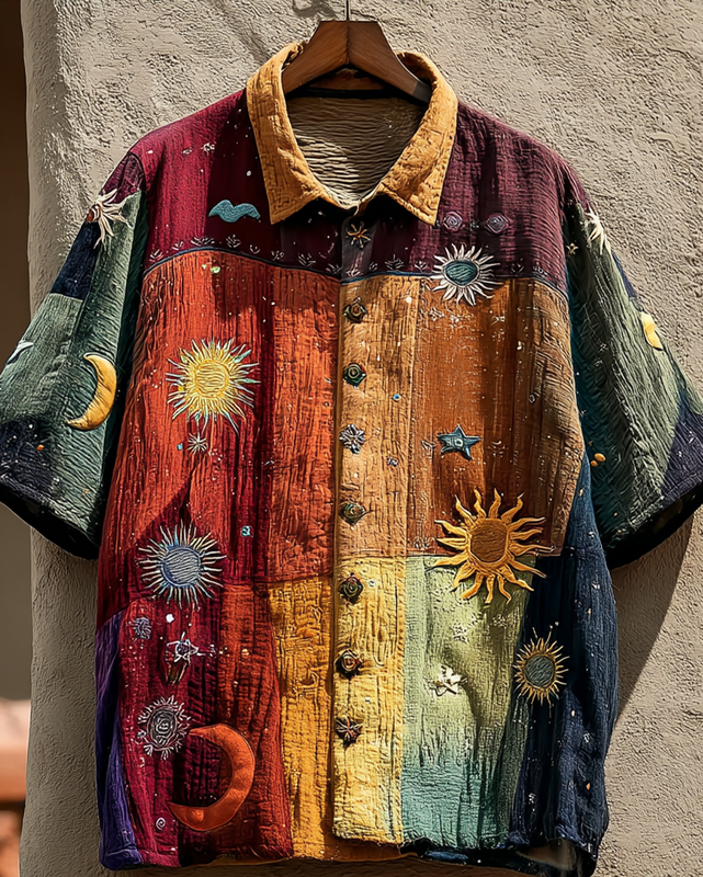 Men's star and moon embroidered rainbow contrast Shirt 5a8b