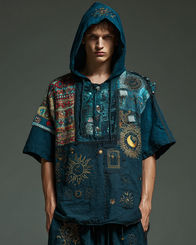 Men's star and moon embroidered short-sleeved top 318f