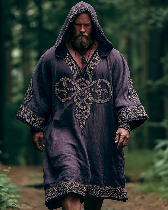 Men's Vacation Viking Kettle Woven 3D Embroidered Hooded Kaftan 7bff