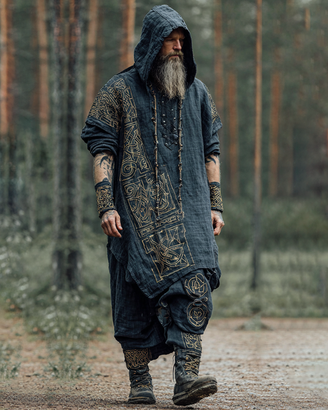 Men's Retro Viking Kettle 3D Embroidered Hooded Kaftan a7d6