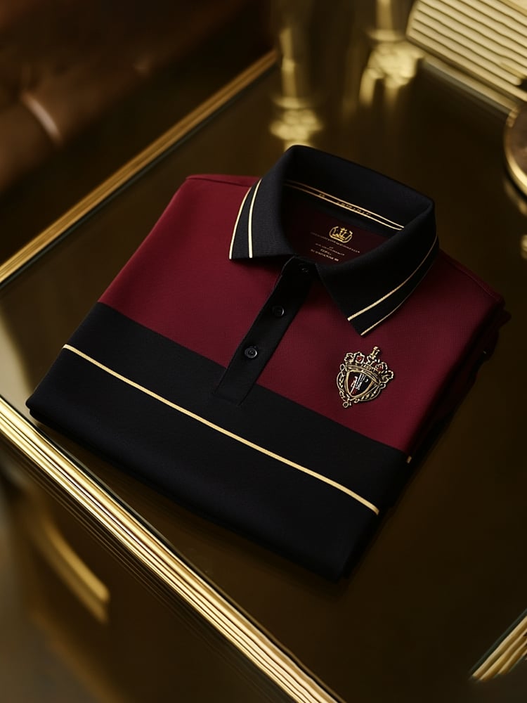 Men's Classic Business Check Logo Button Short Sleeve Polo Shirt