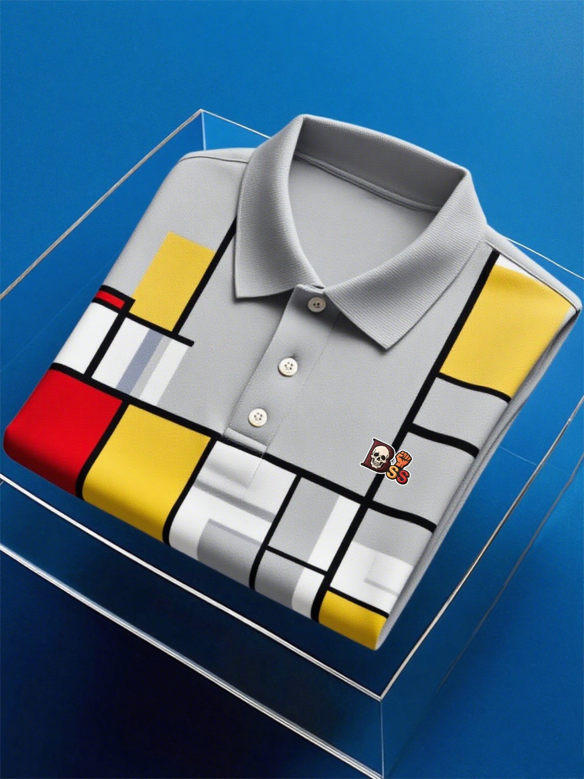 Men's Business Casual Artistic Button Short Sleeve Polo Shirt