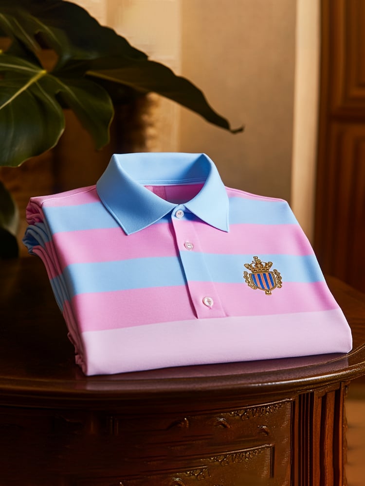 Men's Classic Business Check Button Short Sleeve Polo Shirt