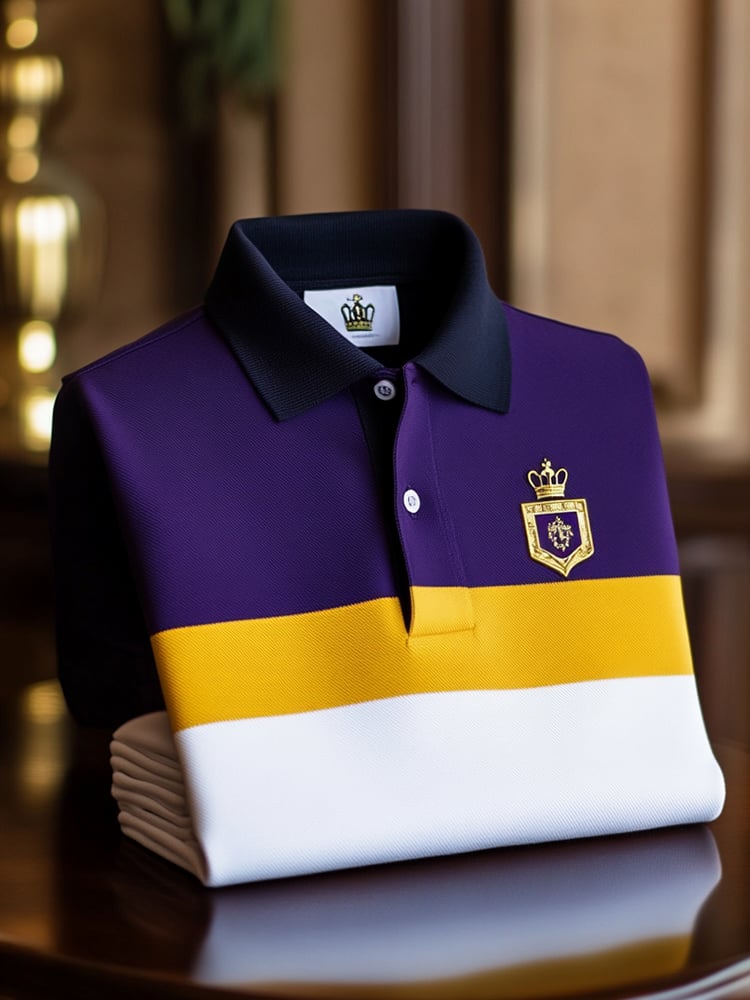 Men's Classic Business Check Logo Button Short Sleeve Polo Shirt