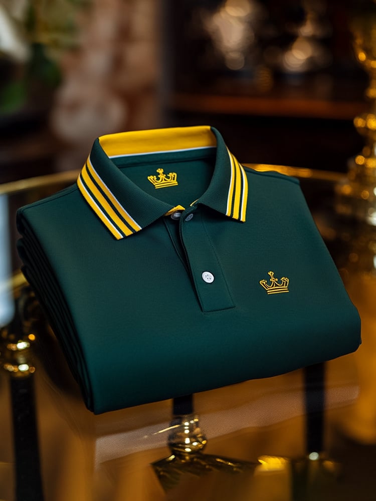 Men's Classic Business Check Button Short Sleeve Polo Shirt