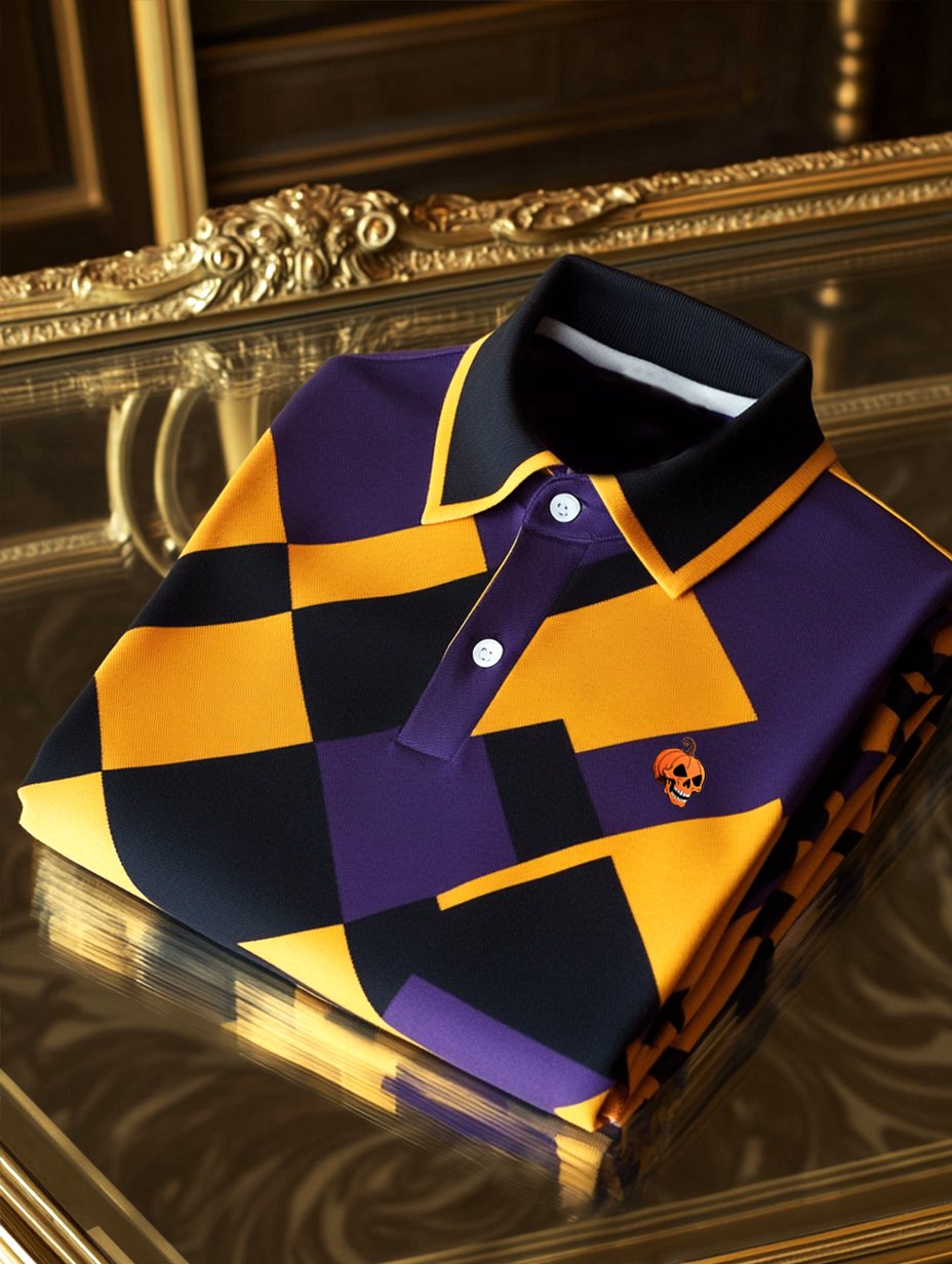 Men's Business Casual Halloween Art Button Short Sleeve Polo Shirt