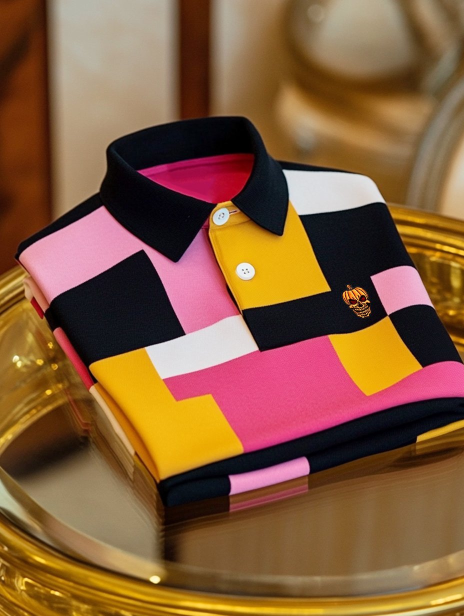 Men's Business Casual Halloween Art Button Short Sleeve Polo Shirt