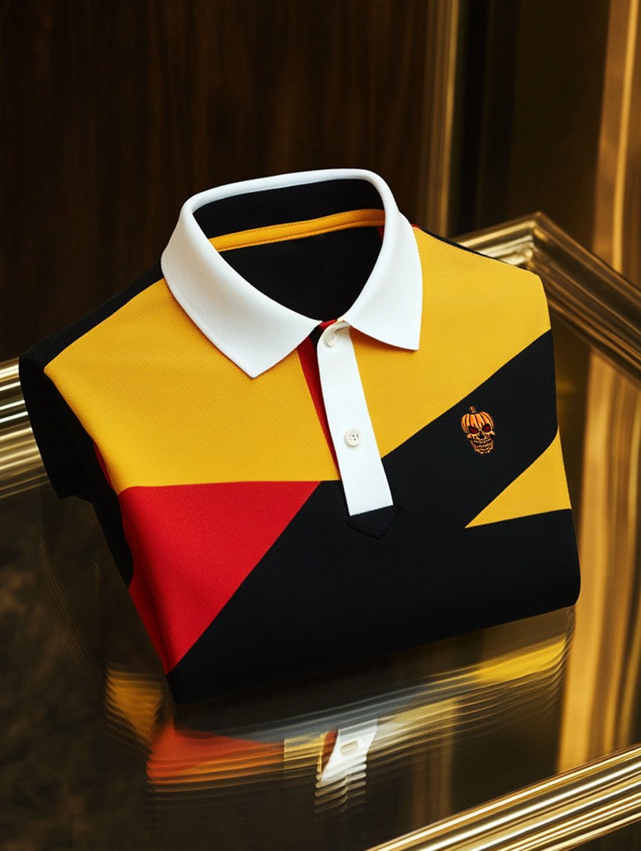 Men's Business Casual Halloween Art Button Short Sleeve Polo Shirt