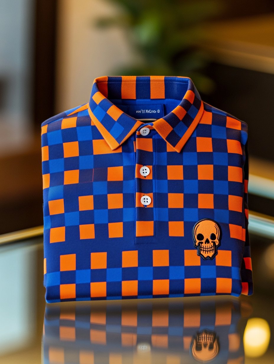 Men's Classic Business Check Button Short Sleeve Polo Shirt