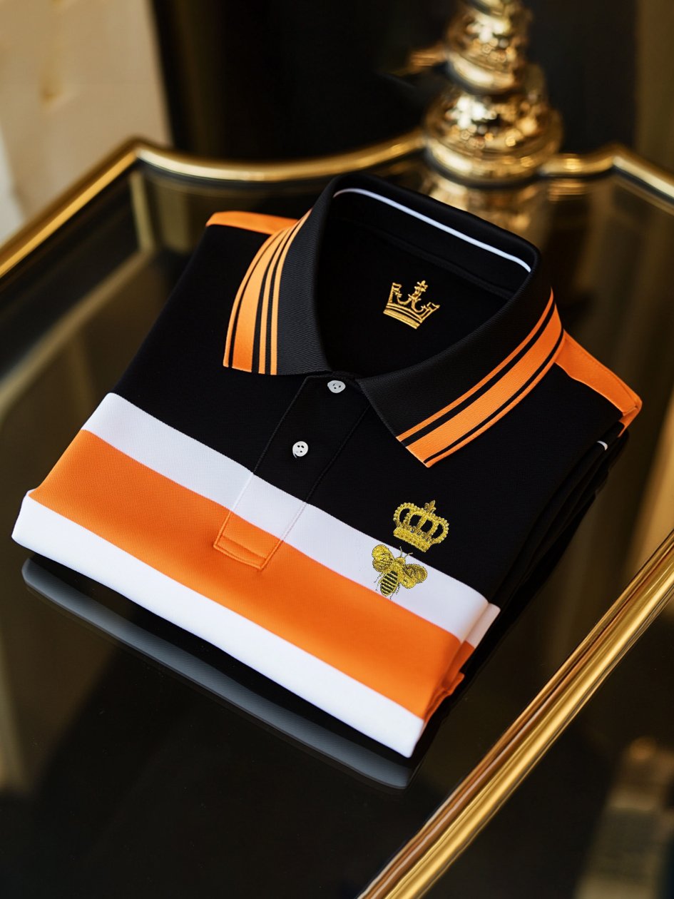 Men's Classic Business Check Logo Button Short Sleeve Polo Shirt