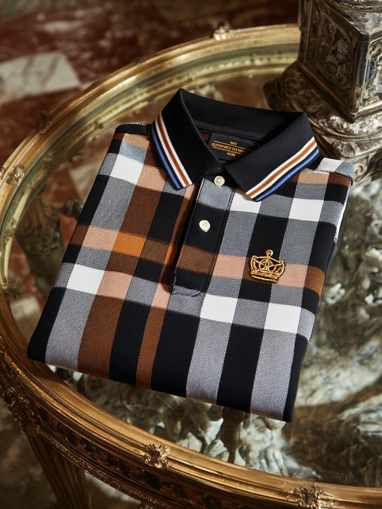 Men's Classic Business Check Logo Button Short Sleeve Polo Shirt