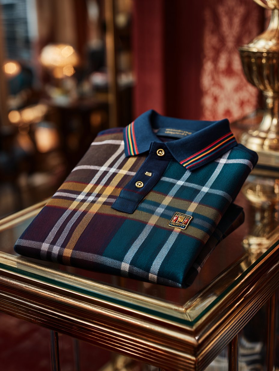 Men's Holiday Check Casual Short Sleeve Polo Shirt