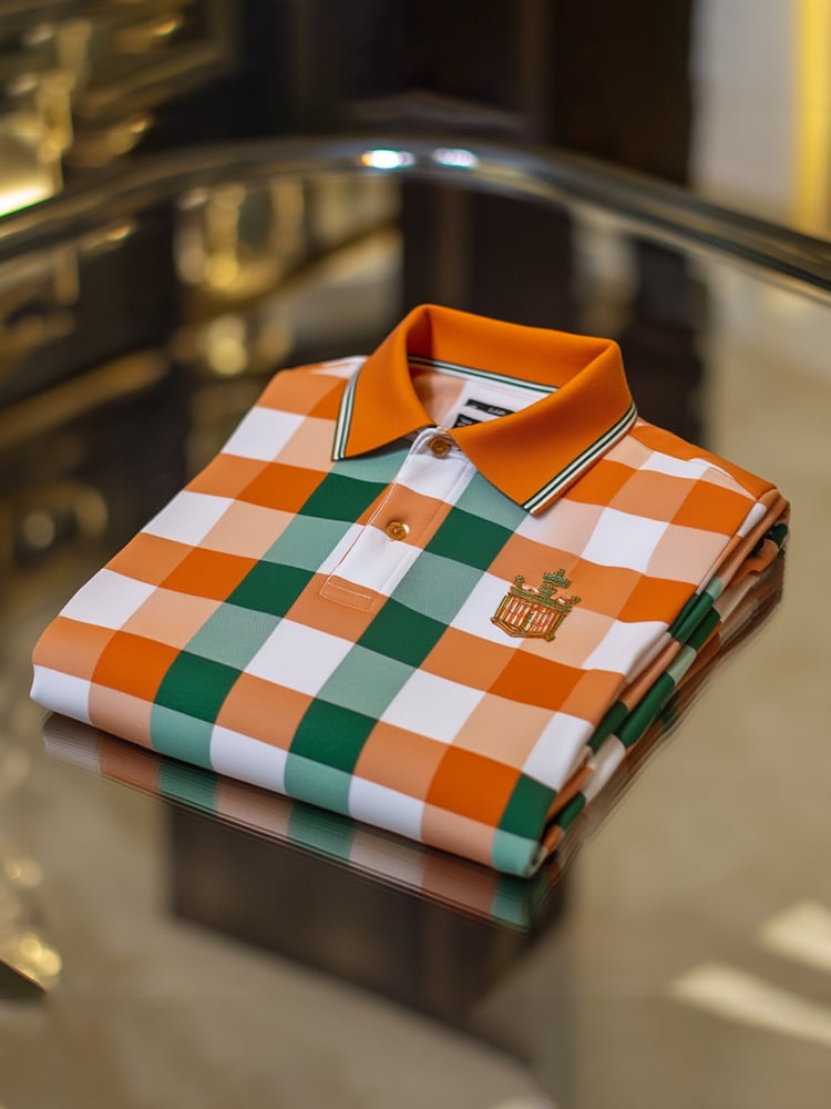 Men's Classic Business Check Logo Button Short Sleeve Polo Shirt