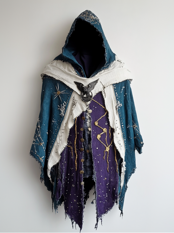 Retro hooded gorgeous contrast color cape c19b