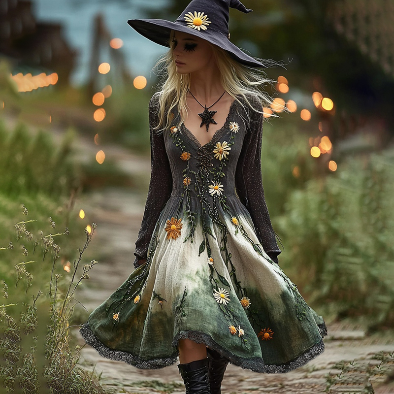 Women's Halloween Gradient Daisy Witch Midi Dress